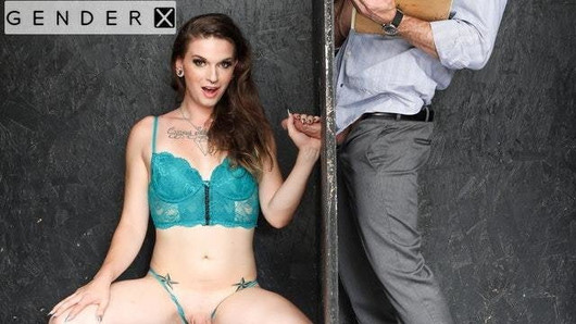 Sissy Candy en lingerie rouge se fait prendre en brochette par sa machine à baiser et sa poupée
